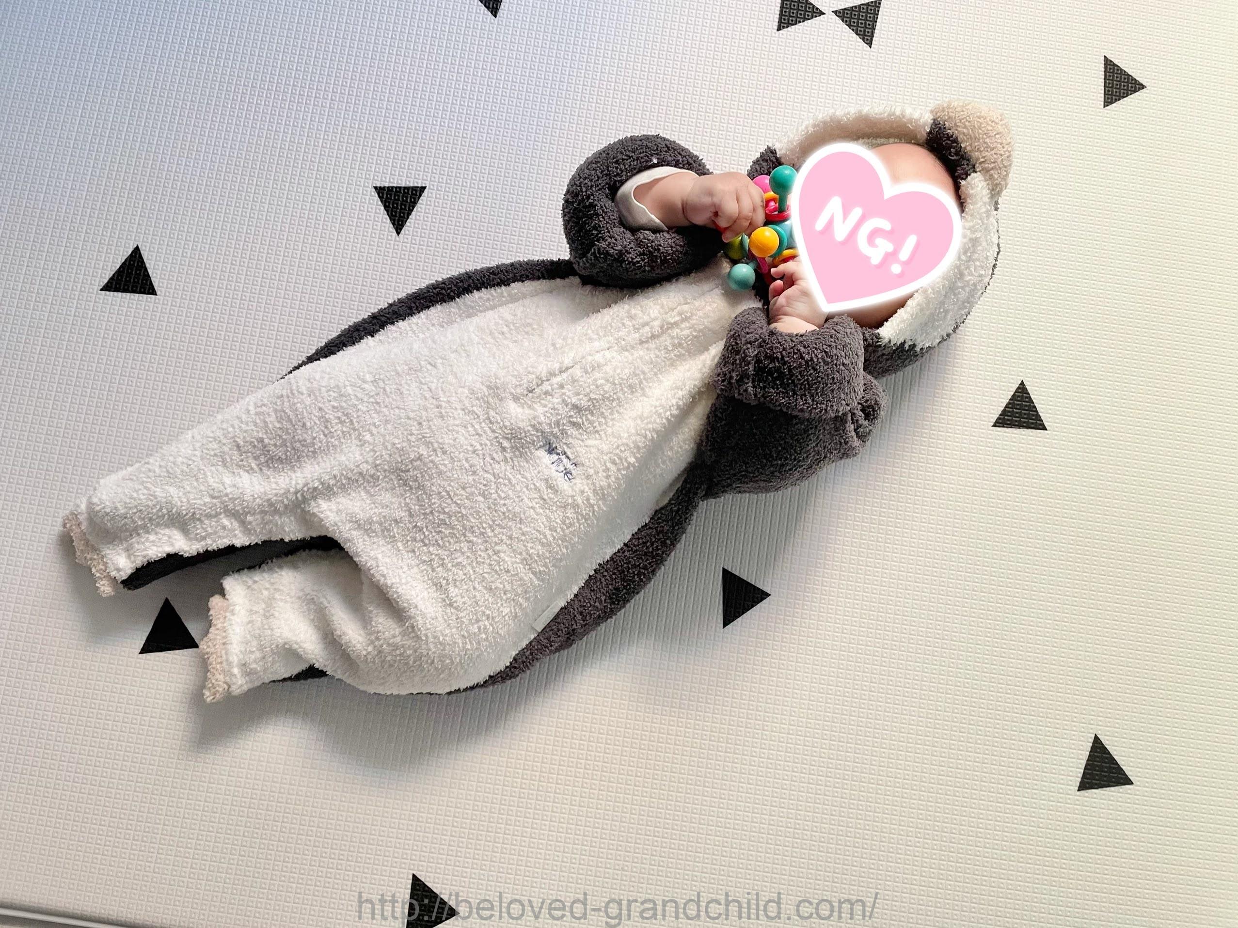 ふわふわもこもこ素材でお馴染みのジェラートピケのペンギンロンパースでした。